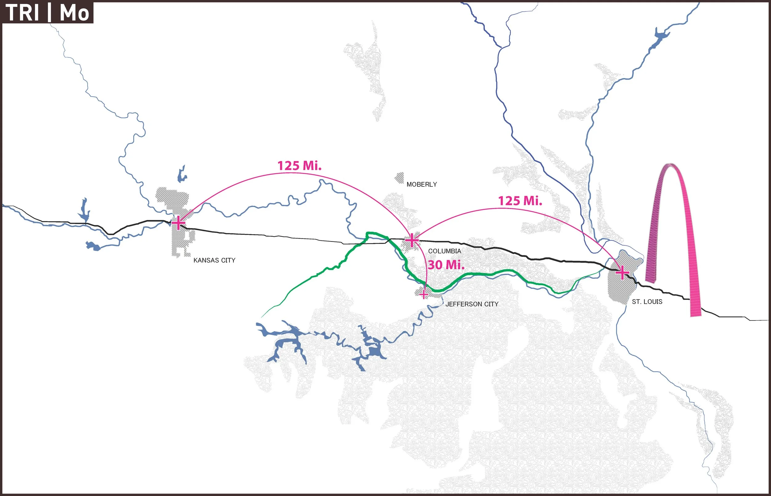 The site exists along the Tri-Mo Corridor, connecting Kansas City, St. Louis, and Columbia, within a historic network that once pulsed with industry and movement. The dormant MKT rail line—a silent artery through the city—now offers the opportunity to reconnect warehouses, neighborhoods, and people in dynamic new ways. By transforming this rail line into a backbone for activity and exploration, Digg’s District draws on the region’s industrial heritage while unlocking its potential for a vibrant, interconnected future.