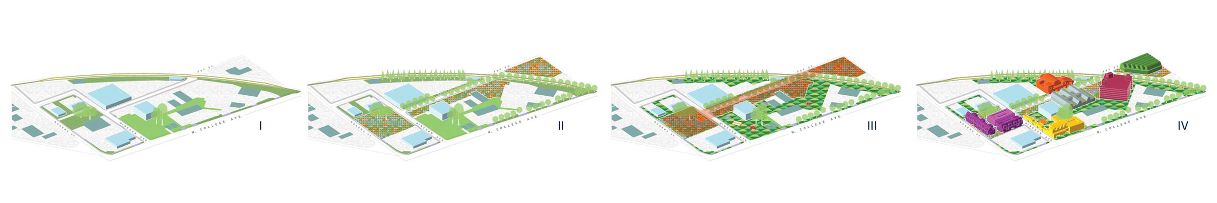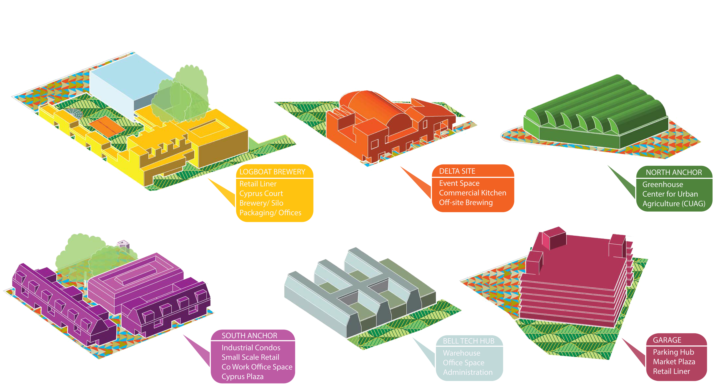 Diggs District reimagines a repurposed industrial hub on the outskirts of a university town, infusing new life into the city fabric by transforming a defunct segment of the MKT rail line into a recreational trail. Once a corridor of industry and movement, the rail line becomes the spine of an urban promenade—linking buildings, landscapes, and communities through recreation, gathering, and mobility. The plan envisions a neighborhood that responds to its industrial heritage while embracing emerging industries and evolving demographics. Hybrid warehouse typologies provide space for work, culture, and experimentation, while public plazas, lobbies, and transitional zones animate the edges between buildings and the trail. Together, they create a vibrant corridor where the past’s grit meets the future’s energy, turning a dormant district into a stage for connection and celebration..